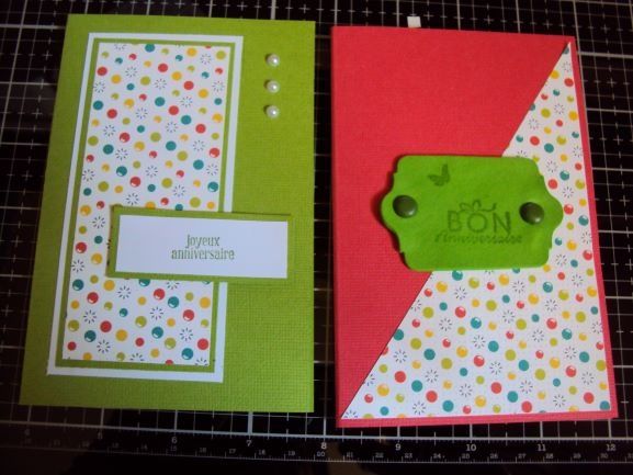Voici 2 cartes réalisées avec les chutes de papiers qui s'amassent, qui s'amassent.... J'ai trouve les idees sur pinterest.