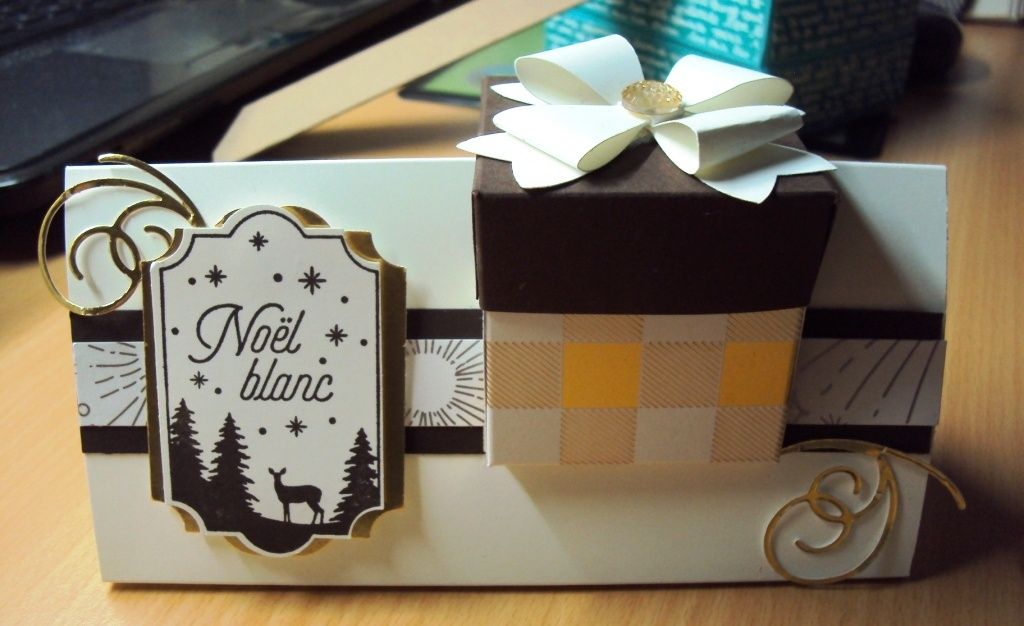 Chez Céline jeudi dernier j'ai aperçu cette boîte que j'ai trouvé très sympa à offrir. Du coup en rentrant , je suis partie à la recherche des explications : Et je me suis retrouvée sur le site de Sonia, où elle explique la procédure pour réaliser cette superbe boîte. J'adore le couvercle: