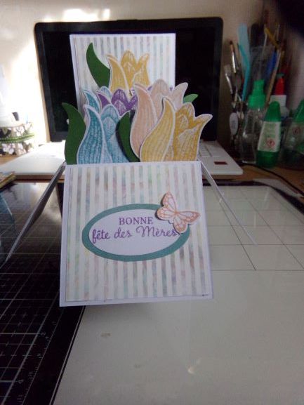 Je viens de realiser une boite à explosion. en suivant le live de Scrap With Steph.
